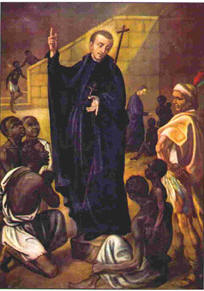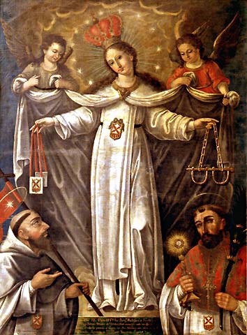 At the time when the Saracen yoke oppressed the larger and more fertile part of Spain, and great numbers of the faithful were detained in cruel servitude, at the great risk of denying, the Christian faith and losing their eternal salvation, the most blessed Queen of heavenly graciously came to remedy all these great evils, and showed her exceeding charity in redeeming her children. She appeared with beaming countenance to Peter Nolasco, a man conspicuous for wealth and piety, who in his holy meditations was ever striving to devise some means of helping the innumerable Christians living in misery as captive of the Moors. She told them it would be very pleasing to her and her only begotten Son, if a religious Order were instituted in her honor, whose members should devote themselves to delivering captives from Turkish (Muslim) tyranny. Animated by this heavenly vision, the man of God was inflamed with burning love, having one desire at heart, viz: that both he and the Order he was to found, might be devoted to exercise of that highest charity, the laying down of life for one's friends and neighbors.