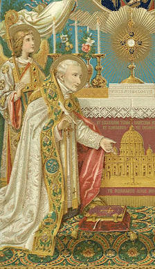Bl. Peter Julian Eymard, of France, had a strong devotion to the Holy Eucharist and Our Lady and began his priestly life in the Society of Mary. “But his heart burned with the desire to establish perpetual adoration of Jesus in the Blessed Sacrament exposed upon a royal throne and surrounded by a large court of adorers.” On February 2, 1851, at the shrine of Fourvière, the most Blessed Virgin had made him understand its necessity. ‘All the mysteries of my Son have a religious order of men to honor them. The Eucharist alone has none ...’ After several years of prudent reflection and interior combat, encouraged by Pope Pius IX, he founded the Congregation of the Most Blessed Sacrament at Paris on May 13, 1856. The title of Our Lady of the Blessed Sacrament was first given to Mary by Bl. Peter Julian Eymard in May 1868, while speaking to his novices. A few years later he described what her statue should look like: "The Blessed Virgin holds the Infant in her arms; and He holds a chalice in one hand and a Host in the other." He exhorted them to invoke Mary: "Our Lady of the Blessed Sacrament, pray for us who have recourse to thee!"Later, Pope Pius IX enriched the invocation with indulgences. Twice, Pope St. Pius X did the same. On December 30, 1905, he granted a 300 days indulgence to the faithful who pray: “Our Lady of the Most Blessed Sacrament, pray for us.” “This title, Our Lady of the Blessed Sacrament, is perhaps the most meaningful of all," said Pope St. Pius X. In 1921 the Sacred Congregation of Rites authorized the Blessed Sacrament